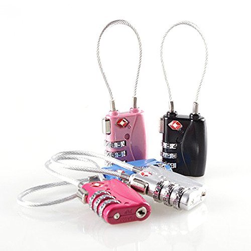 Pixnor 5 Colors TSA Approved Security Cable Luggage Locks 3-Digit Combination Password Locks Padlocks (Black Silver Rosy Pink Blue)
