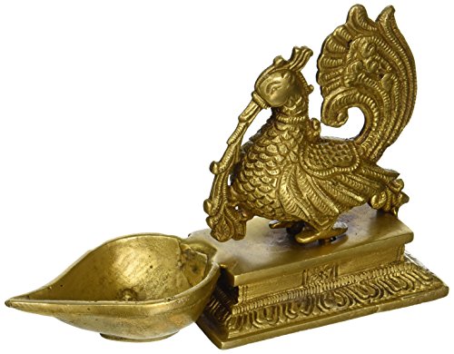 Oil Wick Lamp Diyas Peacock Decorative Home Decorations Indian Art Hindu, H: 5.5 Inche, W: 1.22 Kg