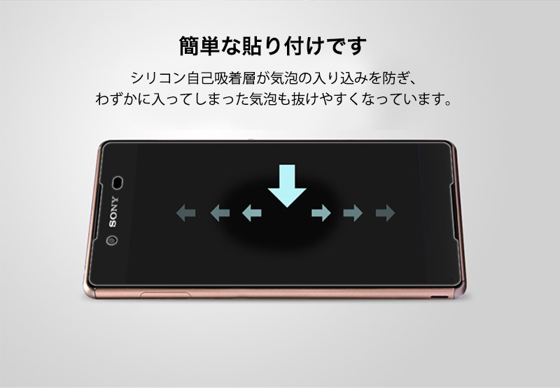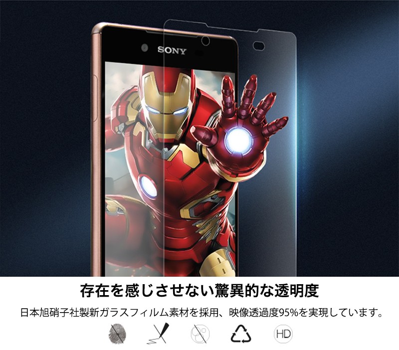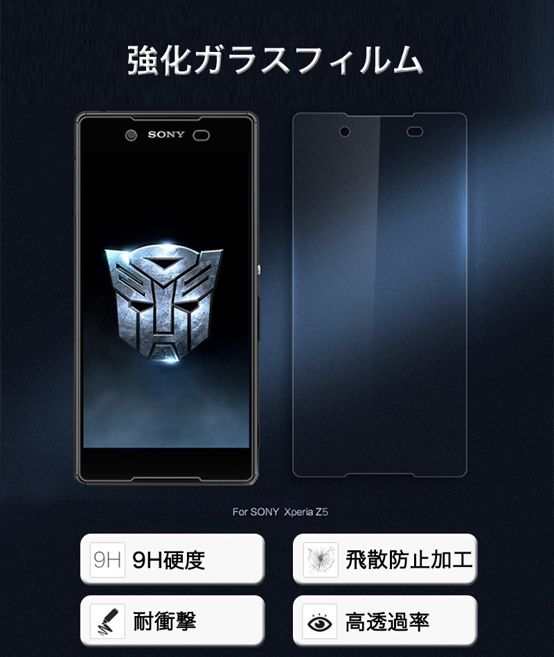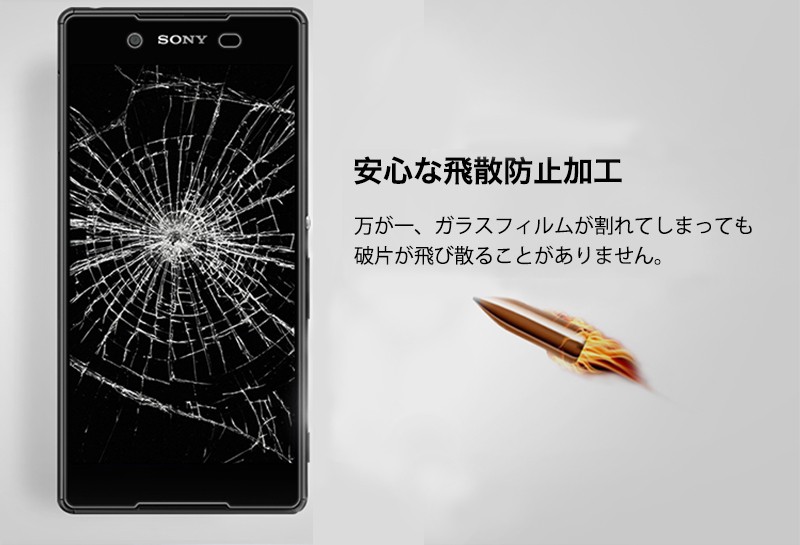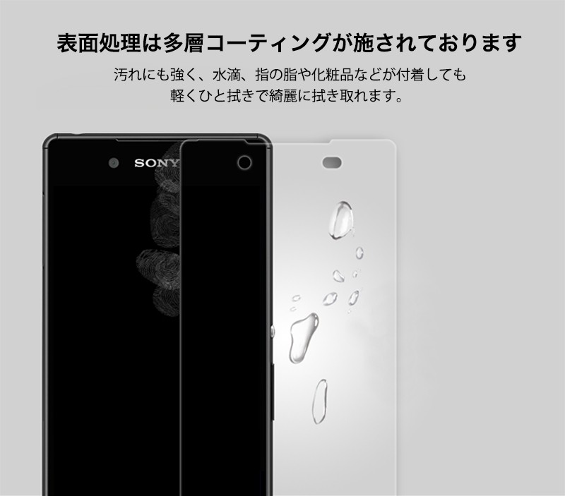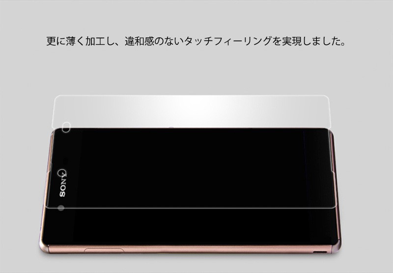 ★「対応機種」XperiaZ5(エクスペリア ゼット5) SO-01H★「商品特徴」厚み0.3mmと超薄タイプ、更に薄く加工し、違和感のないタッチフィーリングを実現しました。高級感を演出するラウンドエッジ加工、摩擦をほぼ感じない滑らかな表面加工で、Retinaディスプレイの最大のパフォーマンスを発揮します。安心な飛散防止加工、万が一、ガラスフィルムが割れてしまっても破片が飛び散ることがありません。表面硬度「9H」強化ガラス採用、PETフィルムの4倍の強度、カッターなど鋭利なもので引っ掻いても大丈夫。存在を感じさせない驚異的な透明度、日本旭硝子社製新ガラスフィルム素材を採用、映像透過度95%を実現しています。操作性を損ないません、低反射で映り込みを軽減、快適な操作性。★「キーワード」XperiaZ5 超薄 強化ガラスフィルム 耐衝撃 飛散防止 自己吸着 高透過率 指紋防止