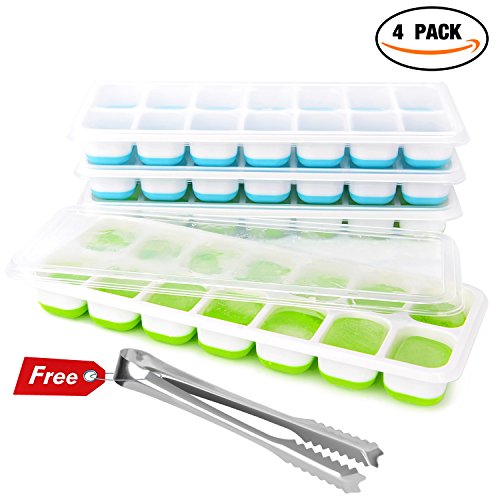 Ideske Ice Cube Trays 4 Pack, Easy Release,Food Grade Silicone Plastic Ice Tray, Spill-Resistant Removable Lid, LFGB Certified & BPA Free