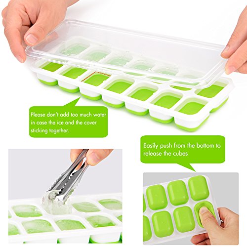 - ✔Easy to Release and Leak-Proof Design➡Fill the trays with water,cover the lid on,and then slip the trays into the freezer.Ice cubes release easily with just a twist.Ice trays comes with lid to keep the ice cube or food fresh, helps prevent water spill and tainting from freezer odours and other food.