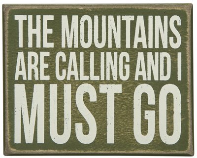 1 X Distressed Box Sign- For Lake or Cabin- 5" x 4" "The Mountains Are Calling And I Must Go""