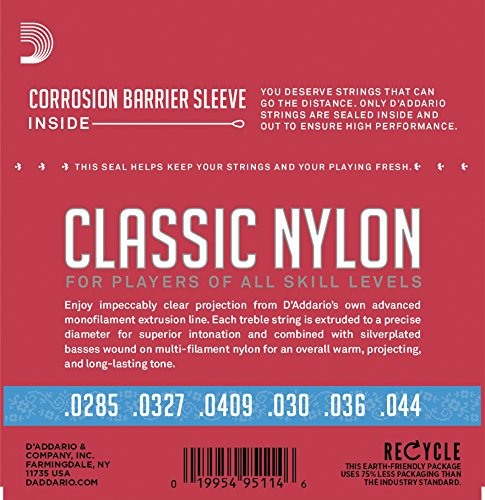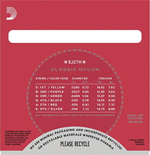 D'Addario EJ27H Student Nylon Classical Guitar Strings, Hard Tension