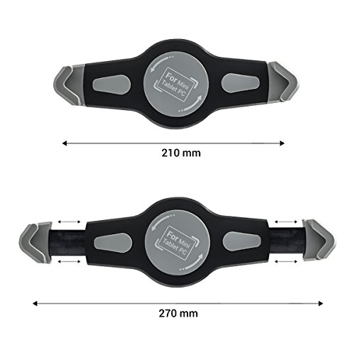 - ALMOST MOUNTS ITSELF: An improved suction cup allows you to generate a stong vacuum with just pressing a button. This way, the mount is easily fixed to windscreens or any flat surface. Inner dimensions: approx. 21,0 - 27,0 cm