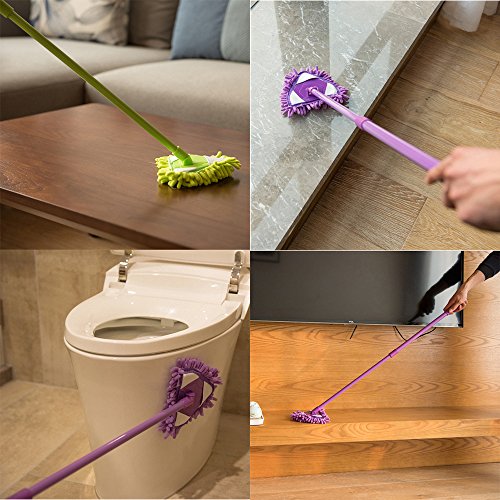 - TRIANGLE MOP MATERIAL:Stainless steel handle,high quality chenille mop head,water absorption and vacuuming capacity is double the ordinary mop,with hanging hole.