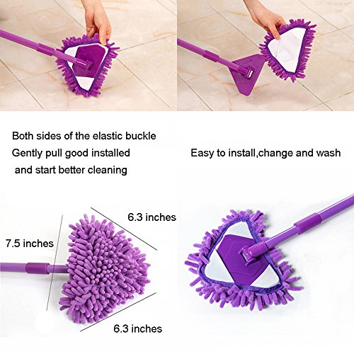 - APPLICABLE PLACES:Small and flexible triangular mop,suitable for bathtubs,bathroom surfaces and behind the toilet,mirrors,glass,bay windows,ceilings,ceiling fans and almost all corners.