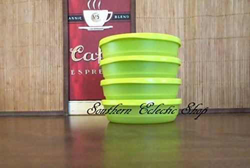 Set of 4 Tupperware Shallow Basic Bright Container Bowl 3/4 Cup in Green