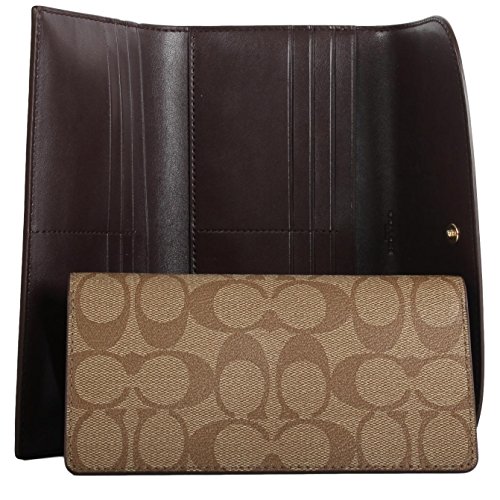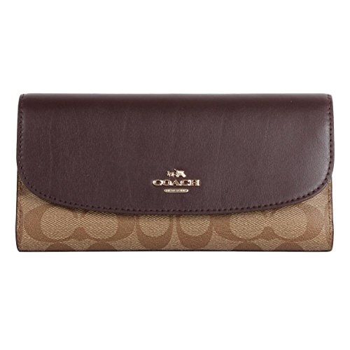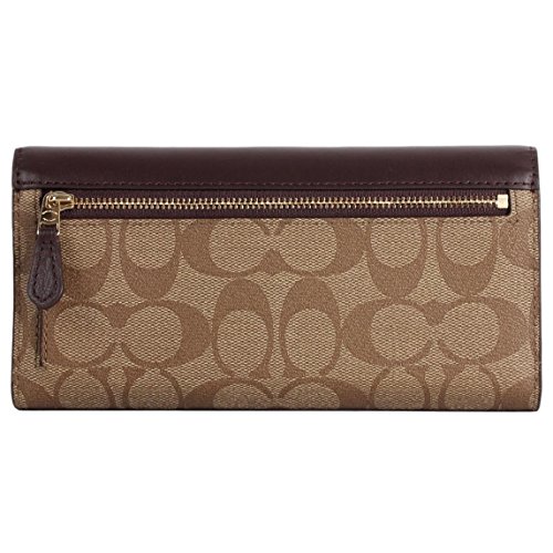 Coach F57319 Signature PVC Checkbook Wallet in Khaki/Oxblood Glitter.
