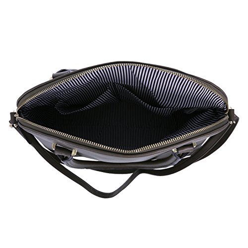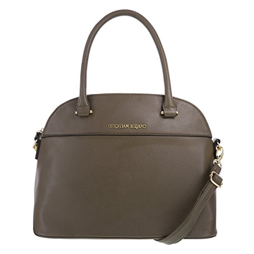 A perfect bag to move you into fall. The Jessa Dome Satchel from designer Christian Siriano features a structured silhouette with a roomy lined interior containing three pockets--one side zippered and two side slip pockets--dual rolled handles with a 6" drop, a top zip closure, and a 22 1/2" optional crossbody extender. Measures approximately 11"HX14"WX6". Manmade materials.Feature