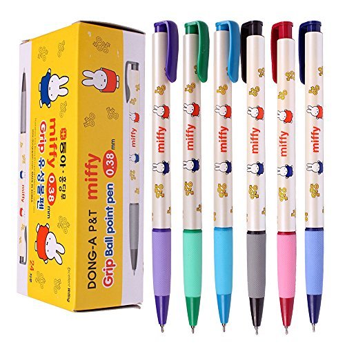 -. Title : Dong-a Miffy Grip Oil Based Ink Ball Point Pen 0.38mm Excellent Writing (6 Color/pack of 24 Pens) Blue/black/red/green/Violet/sky Blue/