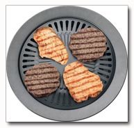 This 13" grill with iron plate, works on standard electric, gas or propane stoves. The water-filled outer ring catches fat and juices during cooking, eliminating smoke and splattering. The high quality, non-stick surface insures easy clean up. 2 year warranty.Feature