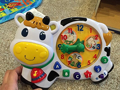 This cool toy, ''Musical Activity Clock'' by Megcos Toy Company LTD, will help you r little one gain familiarity with clock, as well as polish their shape and color recognition skills while offering hours and hours of fun as they spin the hands of the clock, press letter & number buttons to hear their names, or press on the cow's bell to hear one of the sixty songs! The skills your child masters now will stay with them for the rest of their life, so make sure you pick the right toys: educational and entertaining at once. Comes in a colorful box measuring 12 x 2.6 x 10 inches.Exciting and educational, this toy would make a great gift for any child!Feature