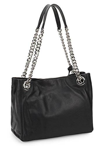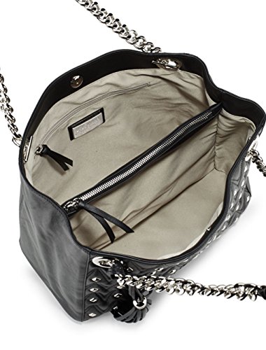 silver -tone chain accented top handles drop an Italian-leather tote featuring contrast diamond quilt construction with a rose gold-tone logo plate applique.