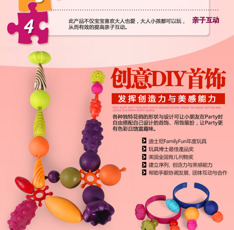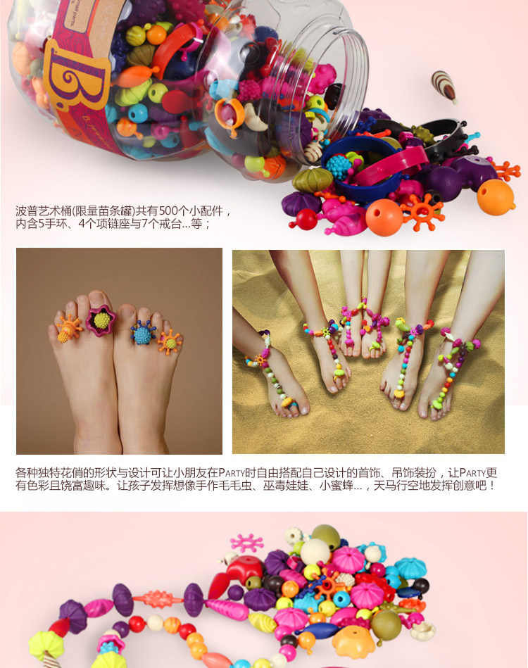ENCOURAGES CREATIVE PLAY: Makes dangly bracelets, necklaces, and rings with hundreds of different combination possibilities.