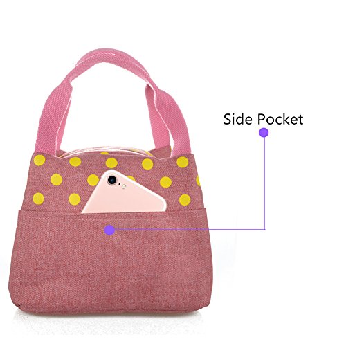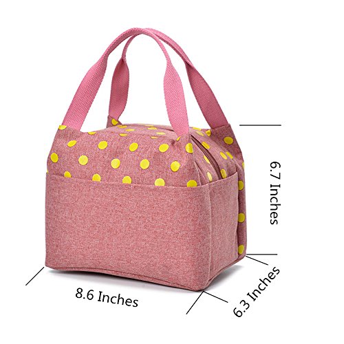 imoli Insulated Lunch Bag for Kids, Reusable Lunch Tote Bag, Polka Dot (Watermelon Red)