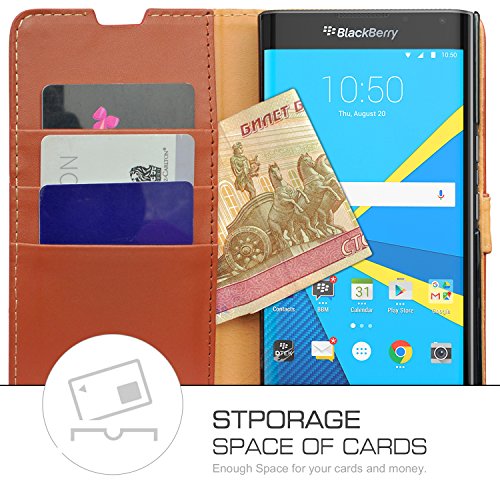 BlackBerry PRIV Case, Profer [Stand Feature] Luxury PU Leather Wallet Case Flip Cover Built-in Card Slots & Bumper Rubber Protective Case for BlackBerry PRIV (Brown)