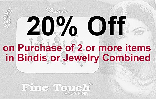 GET 20% OFF ON ENTIRE ORDER.Buy more than one item of any type of Bindis or jewelry. Discount will apply at checkout.