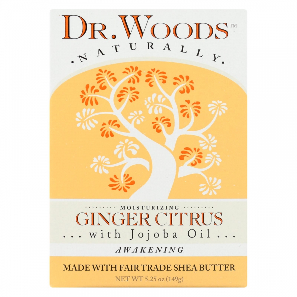 | Dr. Woods Naturals Castile Bar Soap Ginger Citrus Description: Awakening Made with Organic Oils Excitable and Smooth This 100% Natural Ginger Citrus Soap awakens and restores. Energizing Ginger combines with Lemon, Orange and Lime to engage your senses, while a soothing blend of Organic Jojoba and Olives Oils, Organic Shea Butter and Vitamin E moisturizes and conditions your skin.