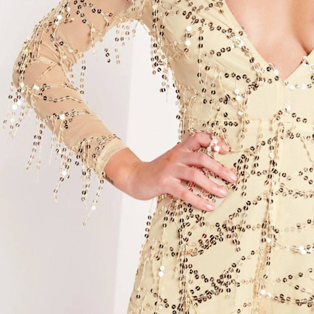 HDY Haoduoyi Women Sequined Romper Solid Gold Long Sleeve Deep V Neck Sexy Bodysuit Zipper Back Party Club Female Romper | |||||||||||||||||||||||||||||||||||||||