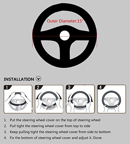 Suitable for middle-size steering wheels with diameter 14 1/2 inch to 15 inch(37cm to 39cm)