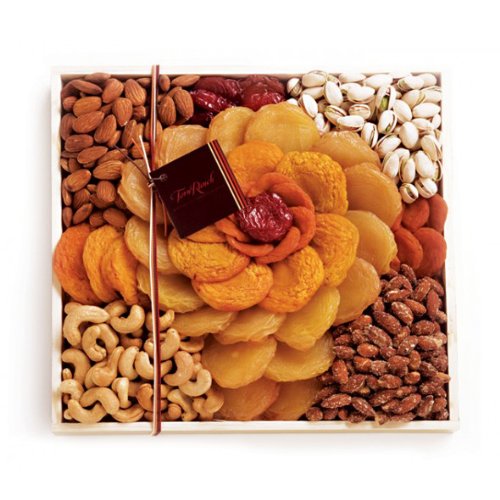 - Serves 1-8; contains peaches, pears, almonds, cashews, smoky almonds, apricots, pistachios & plums