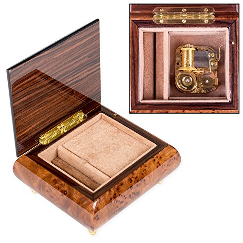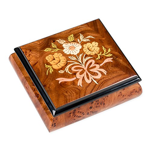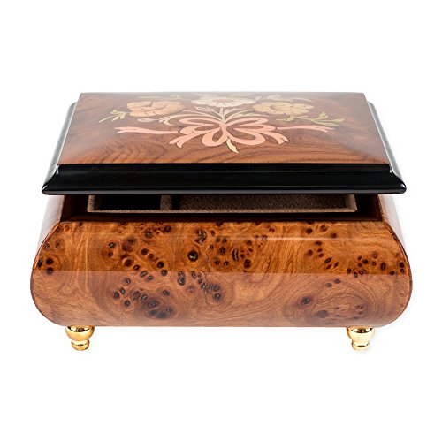 Olmo Ribbon Italian Hand Crafted Inlaid Elm Wood Musical Box Plays Tune Water Music