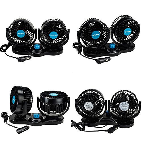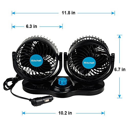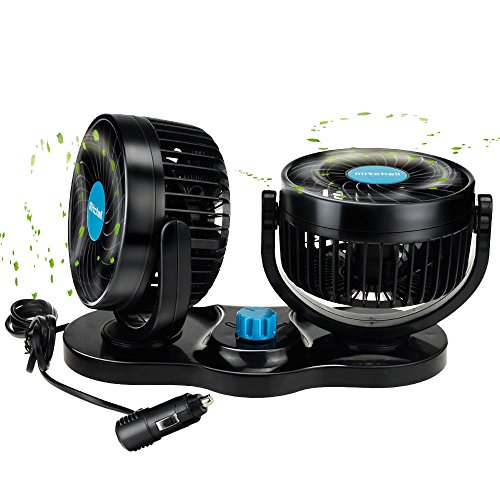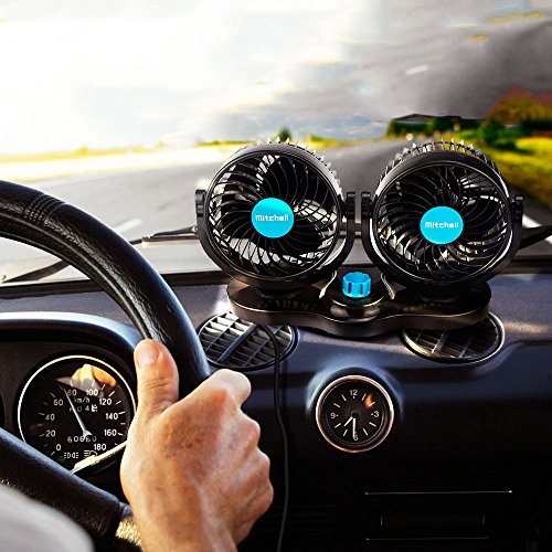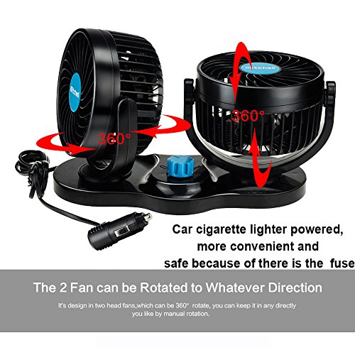WIOR12V 5 inches Dual Head Car Air Fan 360° Rotating Free Adjustment Automobile Vehicle Cooling Car Fan Powerful Quiet 2 Speed Rotatable Electric Car Fans with Clip Cigarette Lighter Plug