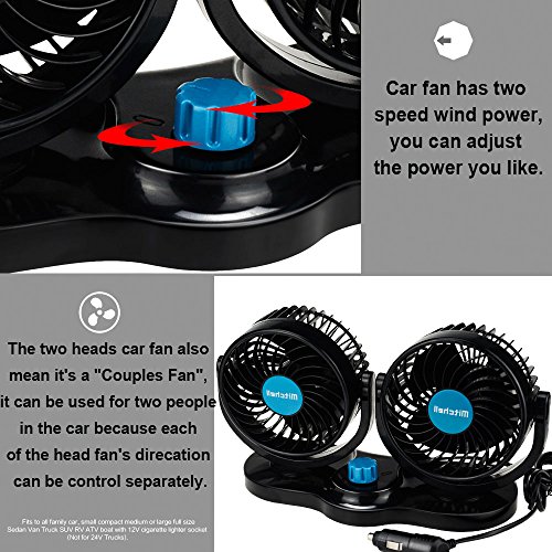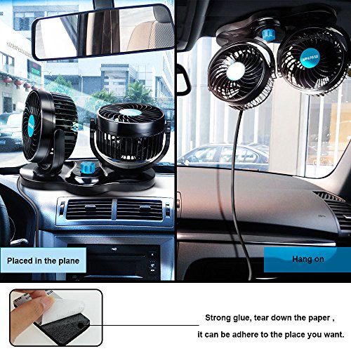 【12V Two Heads Big Wind Car Fan】- Upgrades 2 heads 12V powered portable fan, blow hot air out to the car/ vehicle.
