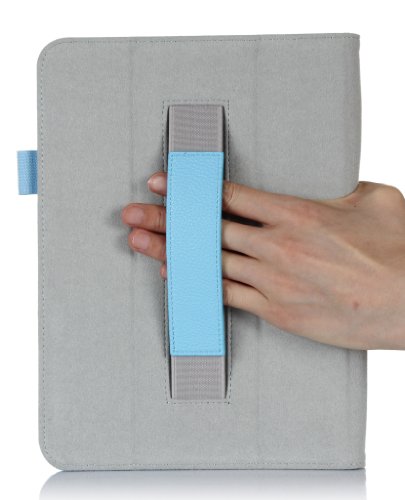 Built-in Tri-Fold front lid easily rolling back as a stand with multiple viewing angles; Built-in elastic hand strap, stylus pen holder; Comes with bonus stylus pen