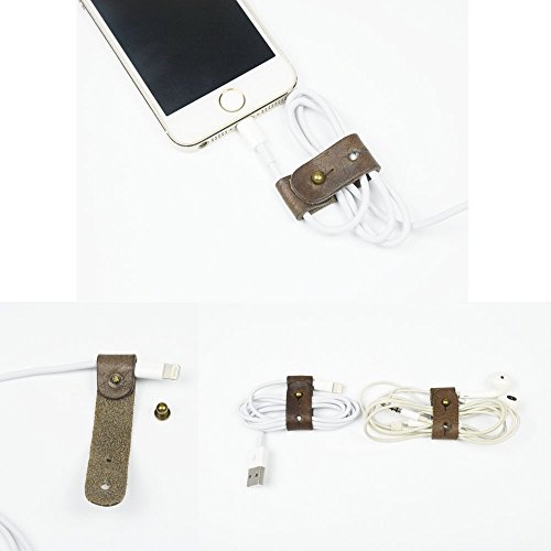 RUSTIC CORD ORGANIZER Holder Headset Headphone Earphone Wrap Winder Cord Manager Cable Winder with Genuine Leather Handmade 5-Pack,Apple USB Cable ORGANIZE WIRES IN YOUR BAG, POCKET, CAR OR HOME.