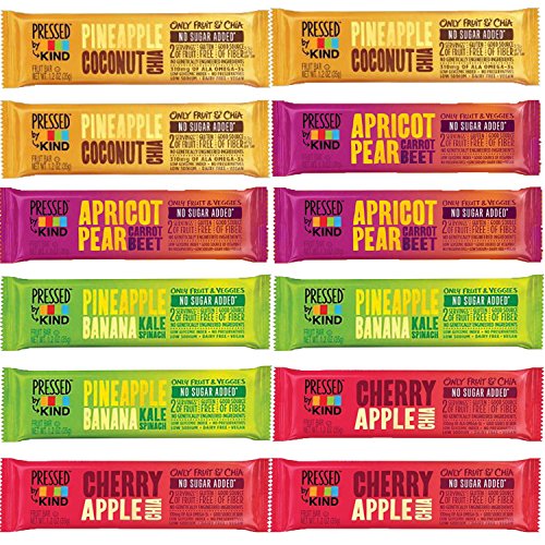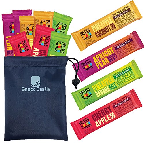 Kind Pressed Bars - 4 Flavor Fruit and Veggie Bar Variety Pack (Pack of 12) with One Snack Castle 9" x 8" Reusable Snack Pouch with Locking Knob