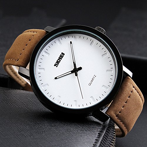-. Feature : Elegant Design : Simple vogue case with genuine leather strap, it's a good gift for both men and women, also a good dress for any outfit / High Quality Materials: Black Alloy case with handsome shiny plated but light is only 56.8g, Scratch resistant glass, Genuine band is soft and comfortable against with any wrist / Japanese Citizen Quartz Movement provides precise and accurate time / Water Resistant(3ATM, 30M 98ft): it can avoid rust from washing hand, raining and sweating, but don't press buttons when it's in the water and avoid extra high/low temperature steam / Purchase Guarantee: We provide 100% Refund and 12 month warranty. If you have discontent, please send emails without hesitation, we'll try to solve any problems or 100% money back; Package: Watch×1, Box×1, Instruction×1