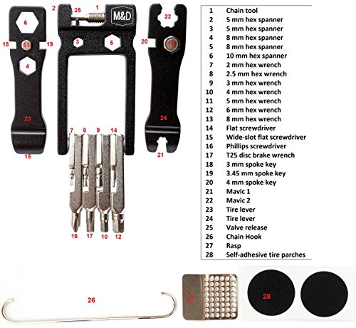 MadWares 28 in 1 Bike Toolkit with Metal Tire Levers pedal screwdriver chain tool spoke keys Al...