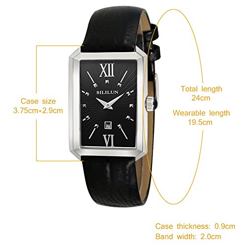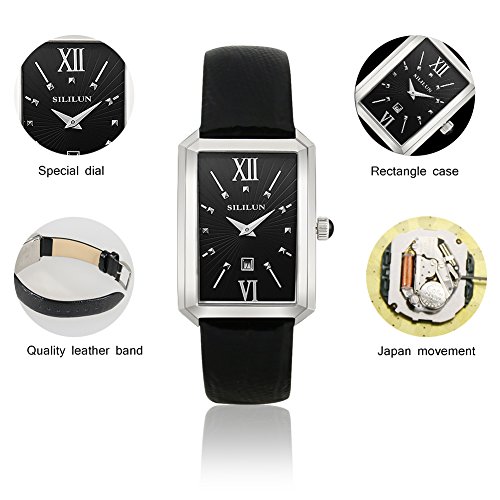 -. Title : SILILUN Unisex Watch Men Rectangle Wrist Watch Quartz Analog Leather Business Watch Dress Watch