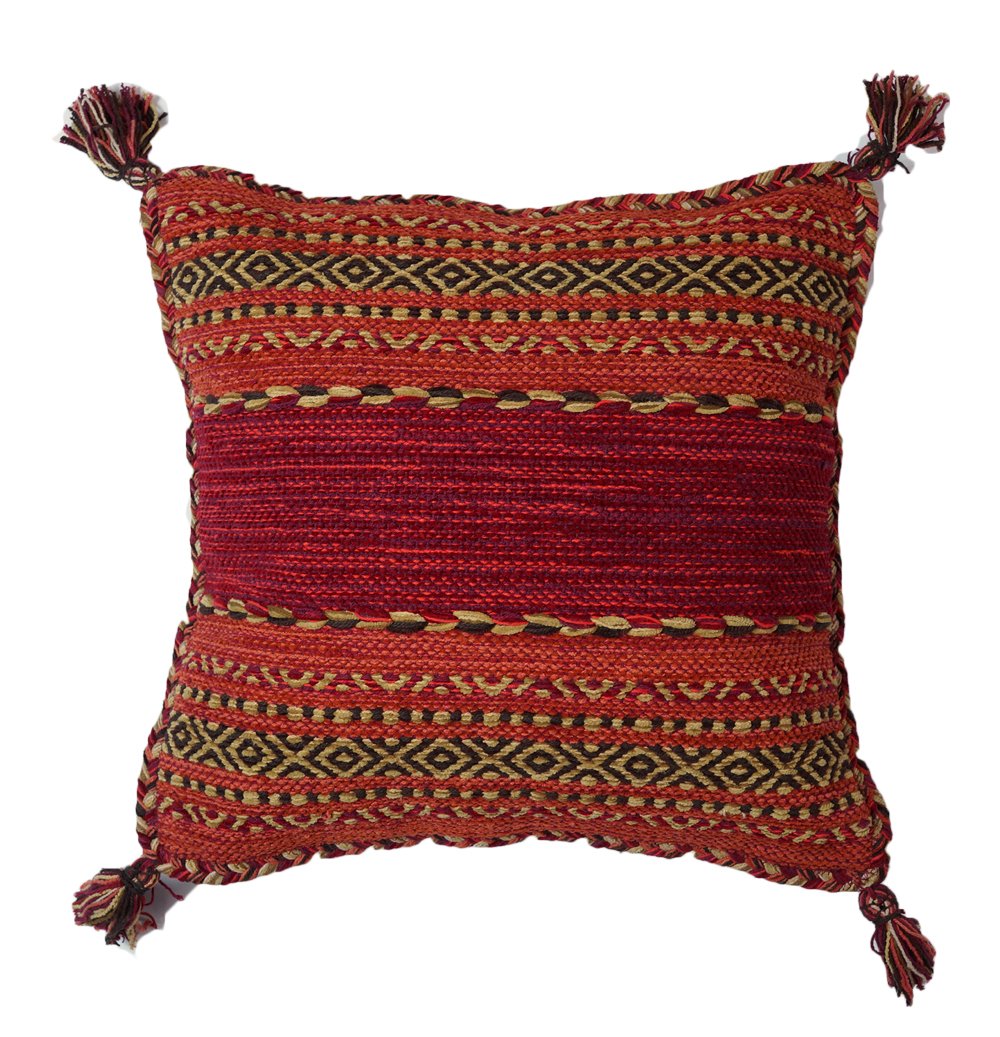 It is a kilim cushion cover which mixed hand crafted Indian cotton and cotton chenille yarn.