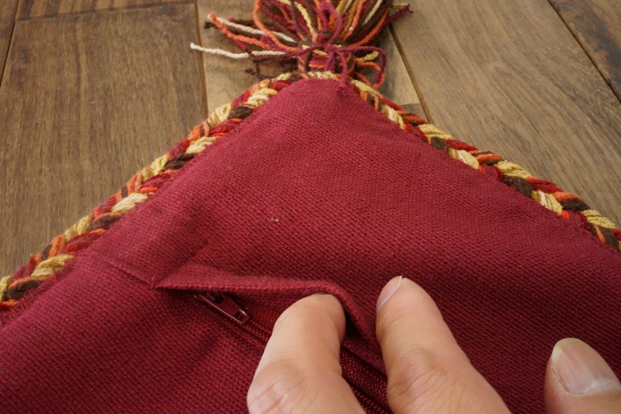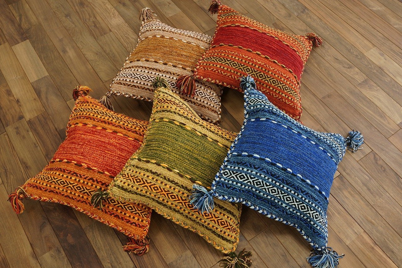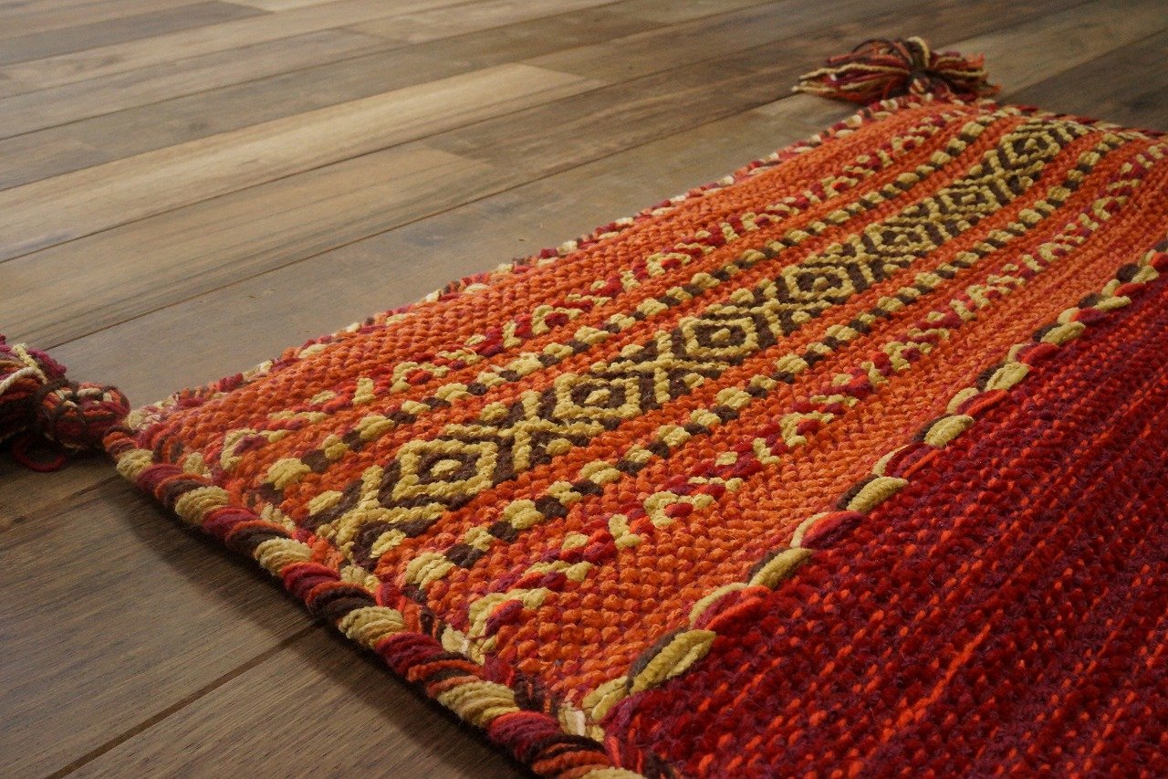 It is an ethnic design that mixed cotton chenille yarn of a mall-like (fluffy yarn) in Indian cotton and geometric color patterns with thick features.