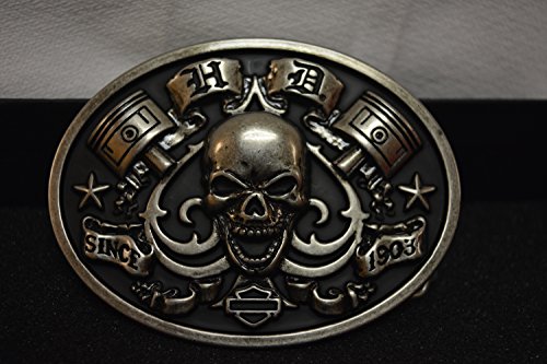 Studio : Lodis Publisher : Lodis Binding : Apparel Product Description Harley-Davidson® Men's Ace Of Spades Belt Buckle, HDMBU11221. Vintage, distressed style with an antique nickel finish. Features an awesome sculpted ace of spades skull graphic with a black enamel fill background. High-quality buckle that is ready for the ride. Would pair great with a distressed black leather belt! Perfect accessory to "Biker-Up" any outfit. Size: 3.5" x 2.75". HDMBU11221 0