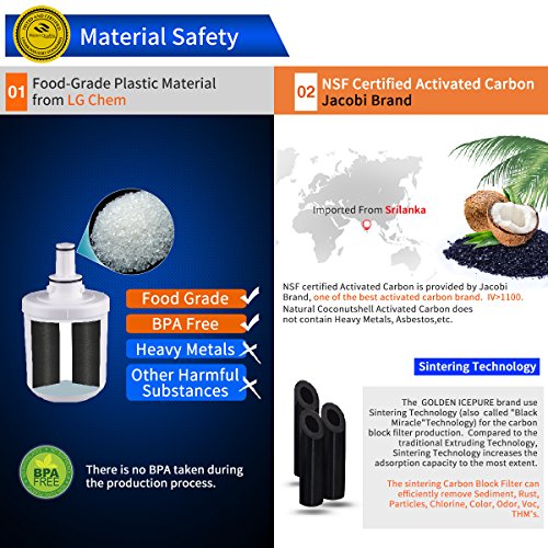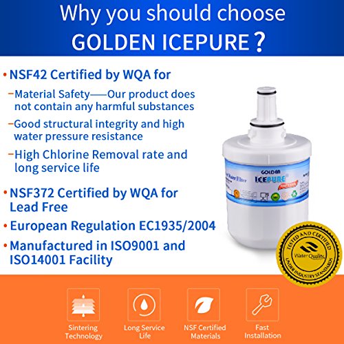 - 【NSF CERTIFIED】Golden Icepure Brand Filters was Tested and Certified by NSF International against NSF/ANSI Standard 42 for material and structural integrity requirements.