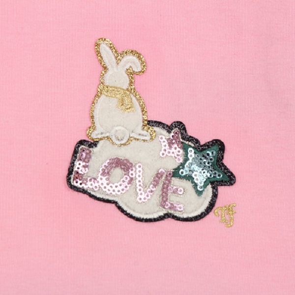 -반넥 스타일의 티셔츠로 앞쪽에 구름, 토끼 와펜이 포인트로 들어간 티셔츠입니다.