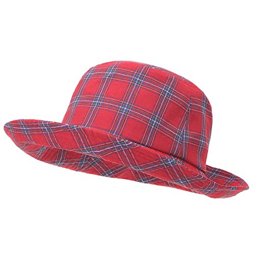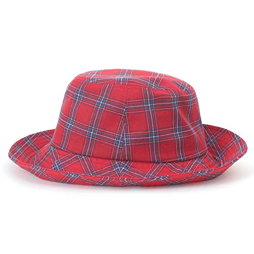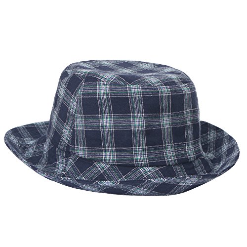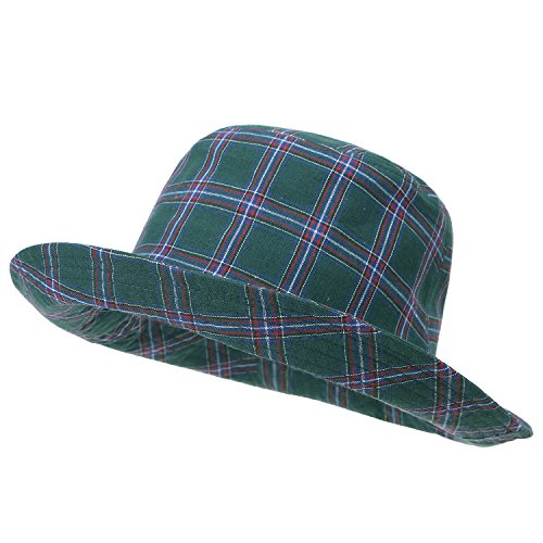 ililily Checkered Pattern Cotton Basic Boonie Hat Casual Stitched Bucket Hat