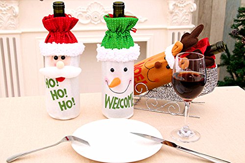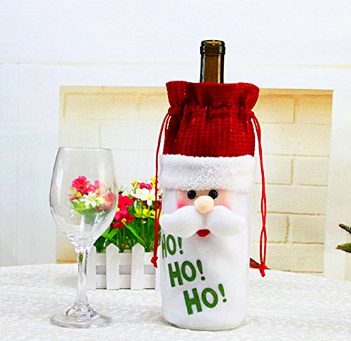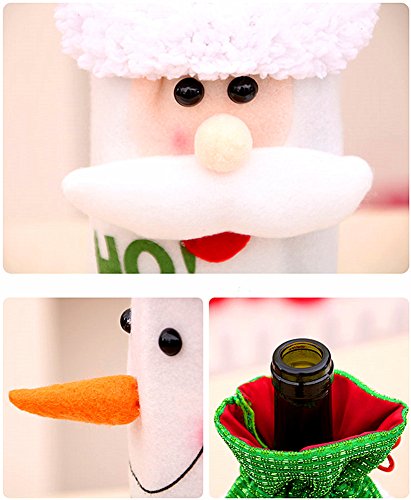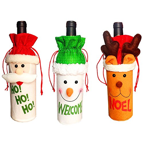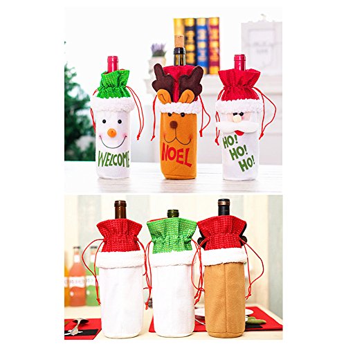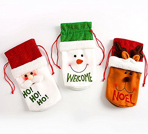 Alimitopia 3pcs Christmas 3D Winebottle Cover Red Wine Drawstring Souvenir Bag for Holiday Dining Table Decoration