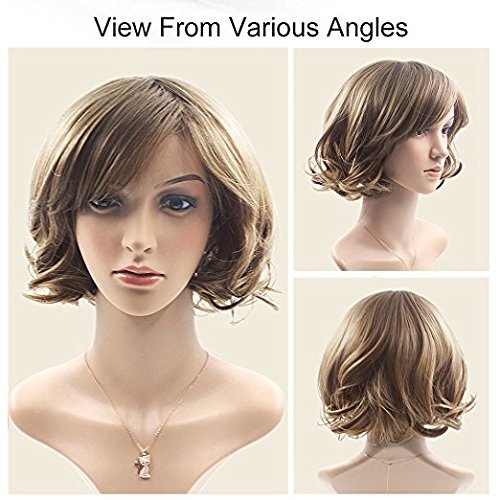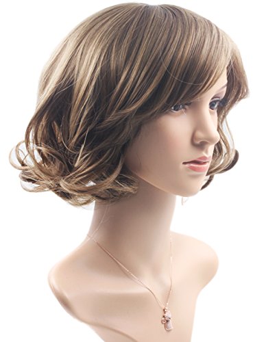 Rabbitgoo Short Flaxen Brown Wig Curly Wave Women Flapper Bob Wigs Heat Friendly Cosplay Party Costume Hair Wig 10.6" (Flaxen Brown)