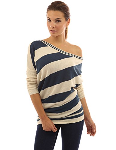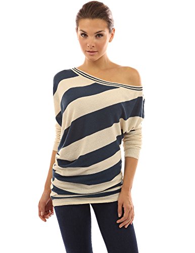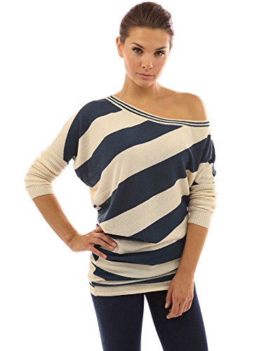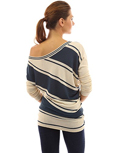 PattyBoutik One Off Shoulder Ribbed Long Sleeve Striped Reversible Sweater Tunic Top. (Reversible: the front and back pattern are different) Model in pictures is 5 feet 8 inches (173cm) tall.