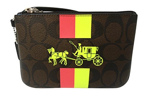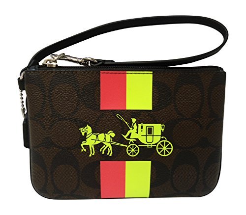 Coach F52704 Brown/Neon Small Wristlet with stripe in Signature Canvas