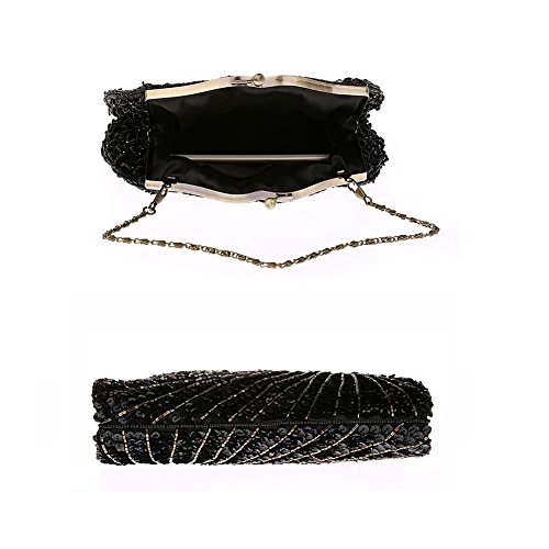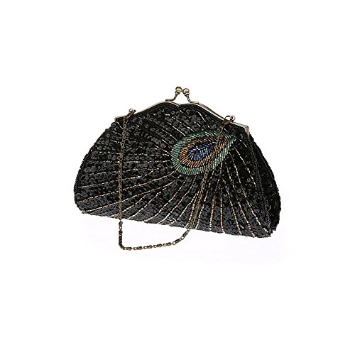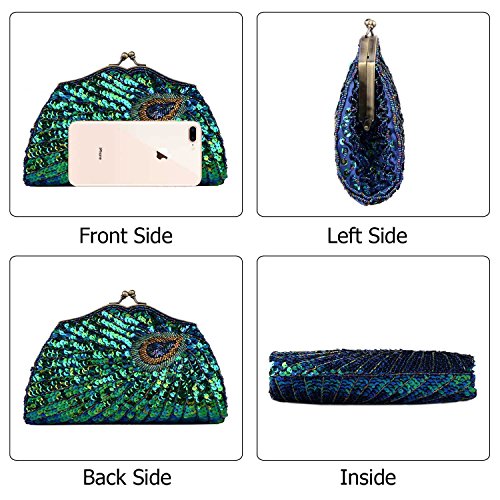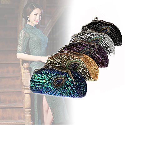 -. Feature : ♥ UNIQUE DESIGN : Full shining sequins beaded pattern and shell shape metal frame make up a peacock pattern that will makes you stand out . / ♥ DIMENSIONS : 8.6" L x 5.5" H x 1.6"W, With Two Replaceable chains (length of short chain:14 inches;The length of long chain: 46 inches) / ♥ CAPACITY: Our fashion handbag have a perfect size to carry different items --cell phone , makeup product, cash,etc ,to let you through a perfect festive night or party night. / ♥ OCCASIONS: Beautiful clutch bag is perfect for weekend, wedding, evening party, prom, cocktail various parties, night out or formal occasions and so on. / ♥ FASHION LADY: It also is a perfect gift for your family or friends. And we think if you dresses up a little black dress will be wonderful.