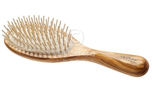 -. Brand : Hydrea London -. EAN : 5060067464301 -. Feature : This stylish brush is carved from strong Mediterranean Olive Wood with a unique distinctive grain and rich depth of colour. / With water resistant qualities and ergonomic design, this brush is as beautiful to look at as it is to use. / The rounded wooden pins set in a pneumatic rubber cushion penetrate deeper than a regular brush providing a stimulating scalp massage. / Perfect for gently detangling hair while preventing static build up. / Length: 8 1/2" (21.5 cm). -. IsAdultProduct : 0 -. Label : Hydrea London -. Manufacturer : Hydrea London -. MPN : WORWC2 -. PackageQuantity : 1 -. PartNumber : WORWC2 -. ProductGroup : Beauty -. ProductTypeName : PERSONAL_CARE_APPLIANCE -. Publisher : Hydrea London -. Studio : Hydrea London -. Title : Hydrea London Olive Wood Anti Static Oval Hair Brush WORWC2 -. UPC : 765343121187