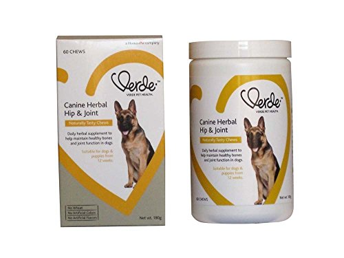 Verde's tasty canine hip & joint chews with Glucosamine, green lipped Mussel and herbs is Exclusively formulated to provide ease of mobility and to maintain healthy bones and joints in your dog.Feature