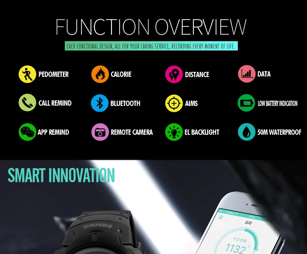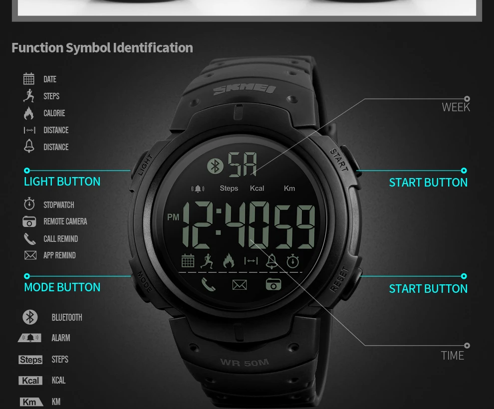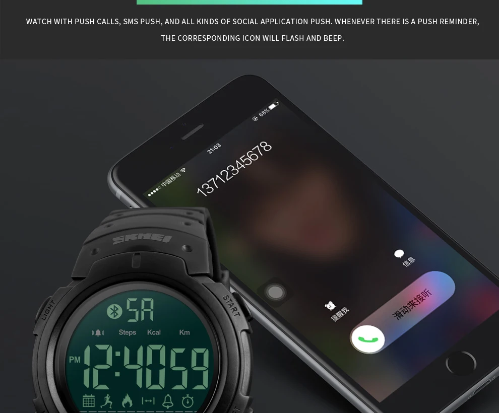 Feature:Complete Calendar,LED display,Message Reminder,Shock Resistant,Chronograph,Water Resistant,Call Reminder,Back Light,Alarm,Bluetooth,Week Display