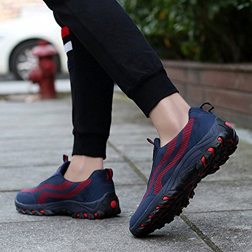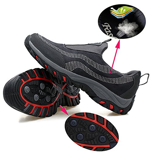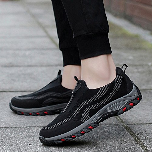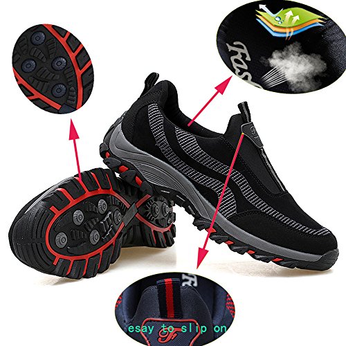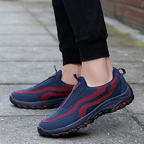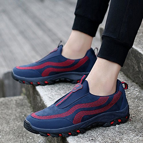 1. smooth suede overlays of the sport shoes featuring in fashion design, soft and comfortable. 2. Cosy soft fabric lining, breathable and deodorant, the sneakers keep you feet fresh all day. 3. Arched non-slip rubber outsole, great for walking on plastic track or firm ground. 4.Slip on design with tab, the hiking shoes allow you quick and easy to put on or take off your shoes. 5. Colors: Black, Blue, grey. Suitable for party, sports, athletics, competition, trail, training, jogging, running, hiking, outdoor, any occasion, casual and trendy.
