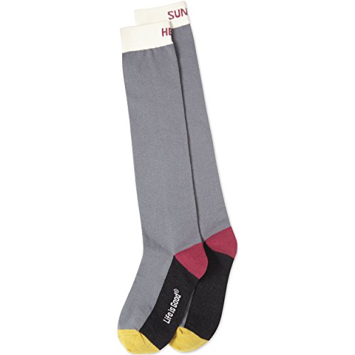 -. Binding : Apparel -. Brand : Life is Good -. Department : womens -. Feature : One size fits all / Messaging under cuff / The Life is good company donates 10% of all sales to kids in need / Cotton/Nylon/Spandex -. Label : The Life is good Company -. Manufacturer : The Life is good Company -. ProductGroup : Sports -. ProductTypeName : OUTDOOR_RECREATION_PRODUCT -. Publisher : The Life is good Company -. Studio : The Life is good Company -. Title : Life is Good Women's Hello Sunshine Color Block Knee Socks